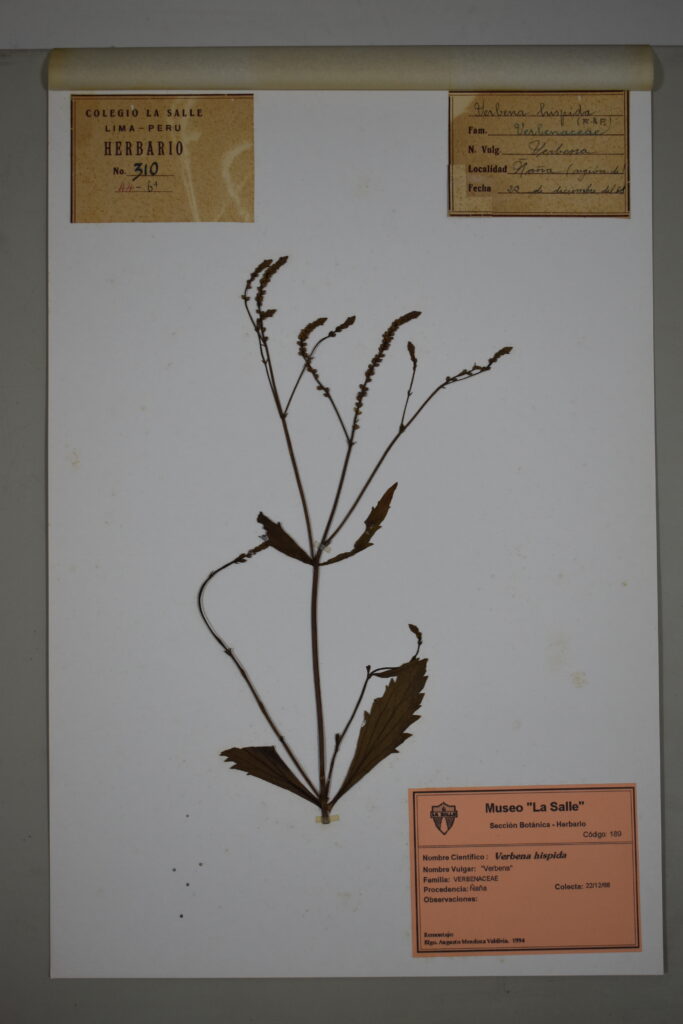 Verbena hispida, conocida comúnmente como verbena, pertenece a la familia Verbenaceae y procede de Ñaña. Es una planta herbácea con