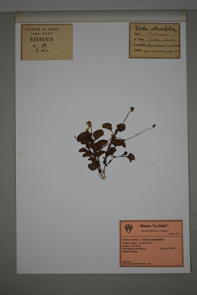 Esta especie, conocida como violeta silvestre, pertenece a la familia Violaceae y procede de Montepunco. Viola obtusifolia es una planta