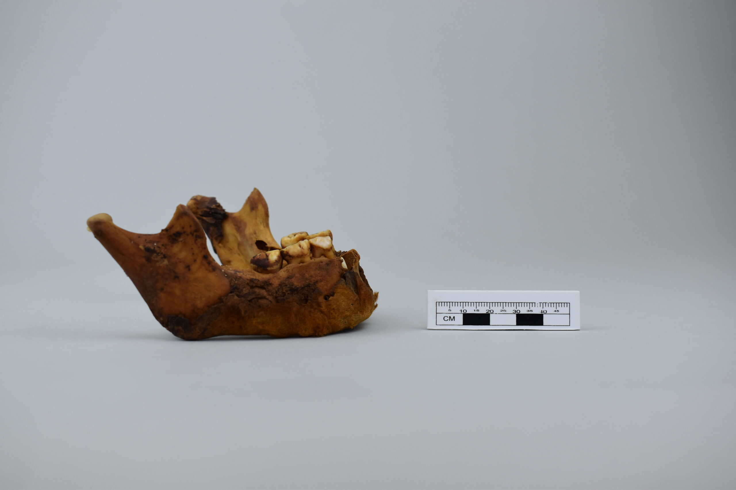 Mandíbula con restos de piel y algodón adheridos (MLS-OH-0023)