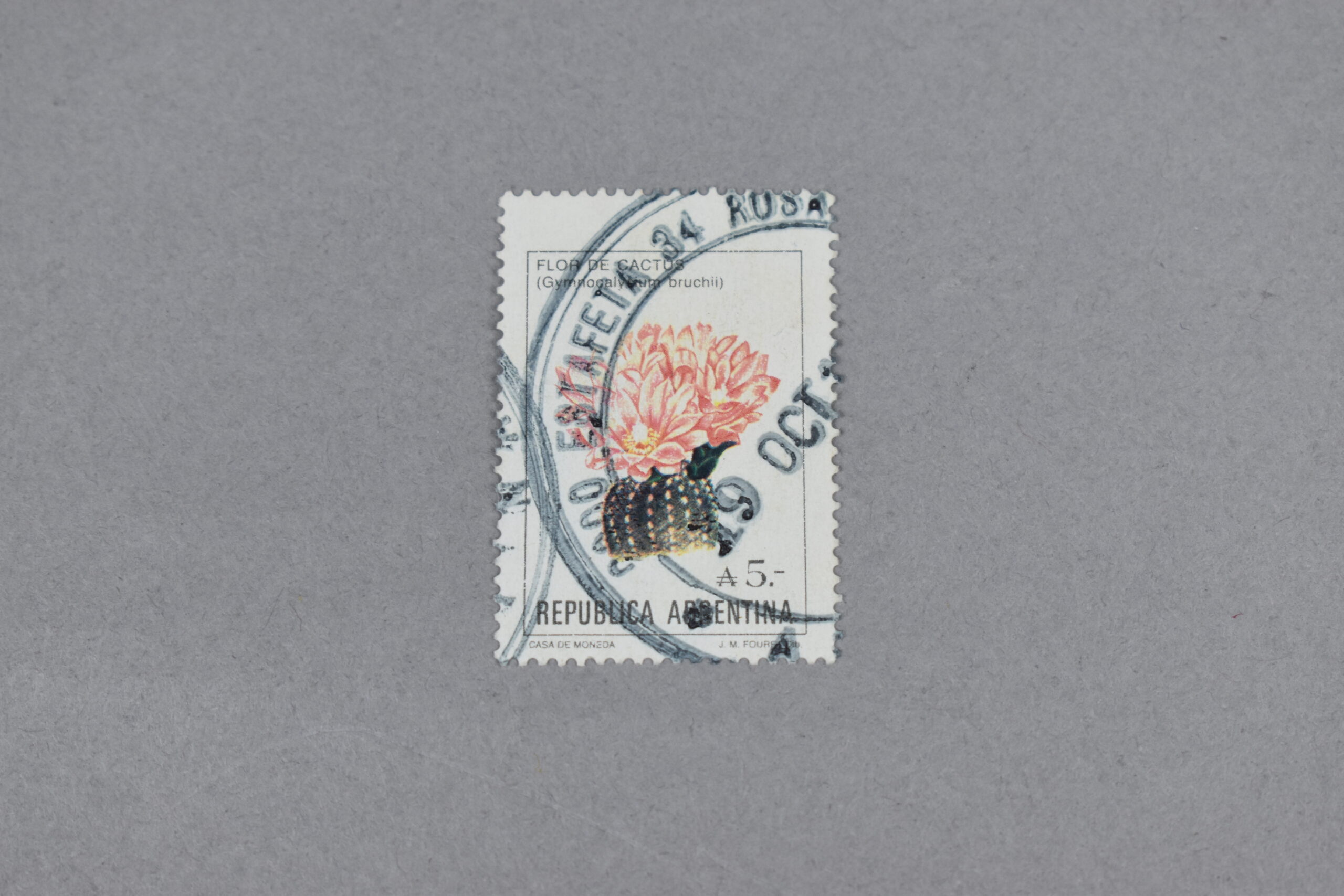 Estampilla que, dentro de un rectángulo de línea fina, que adentro está el dibujo de una: «FLOR DE CACTUS», el valor está en la zona inferior izquierdo, con el nombre del país abajo suyo. En la parte superior está el nombre normal y el nombre científico del cactus.