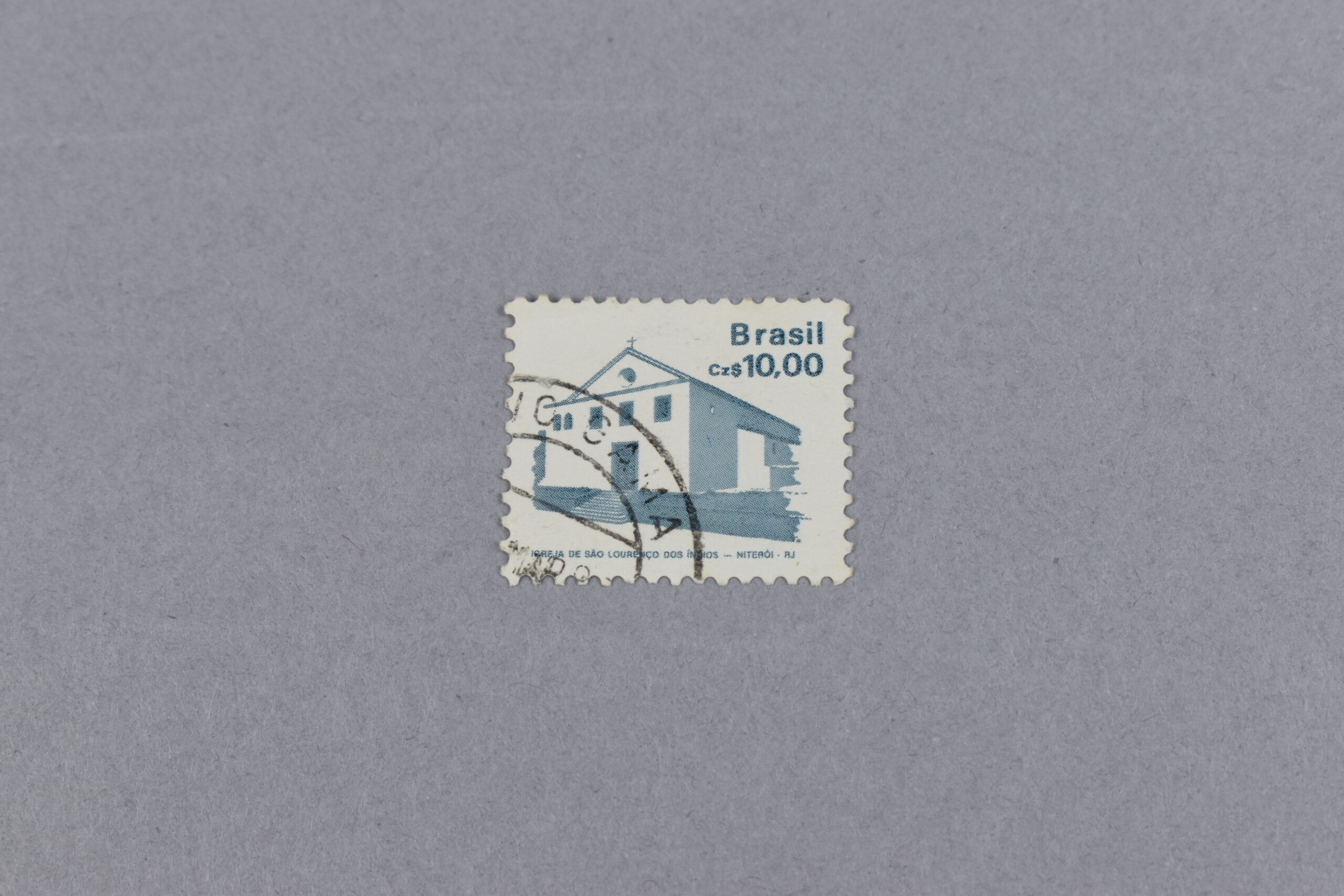 Estampilla que presenta en su parte central una ilustración de color azul Prusia de la Iglesia de San Lorenzo de los Indios (Igreja de São Lourenço dos Índios) en una vista de lado. En la parte superior en letras del mismo color se encuentra el nombre del país: «Brasil» y debajo de este se encuentra el valor facial de la estampilla. En la parte inferior se encuentra tanto el nombre en portugés, la ciudad donde encuentra (Niterói) y las siglas: «RJ» del estado brasileño de Río de Janeiro, al que pertenece la ciudad.