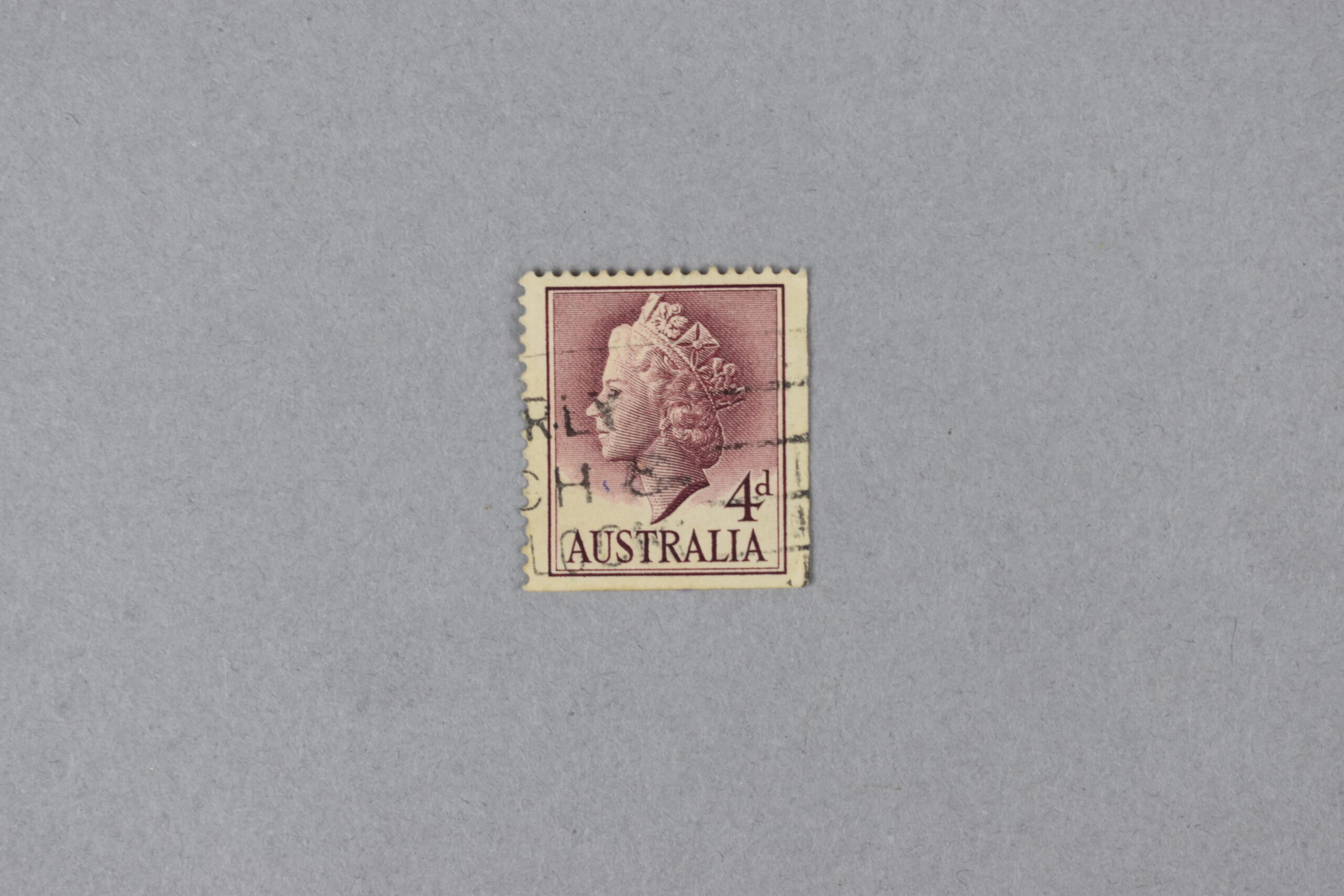Estampilla que presenta un rectángulo color azul en cuya parte central se encuentra el retrato de perfil de la Jefa de la Mancomunidad de Naciones y reina de Australia: «Isabel II» (1926-2022) portando la Diadema Estatal de Jorge IV (George IV State Diadem). En vertical y cerca del rostro de la reina se encuentra impreso en letras blancas el nombre del país: «Australia» y el valor facial del ejemplar. Sobre este ejemplar se pueden los restos de un sello en el rostro y cuello del retrato de la monarca.