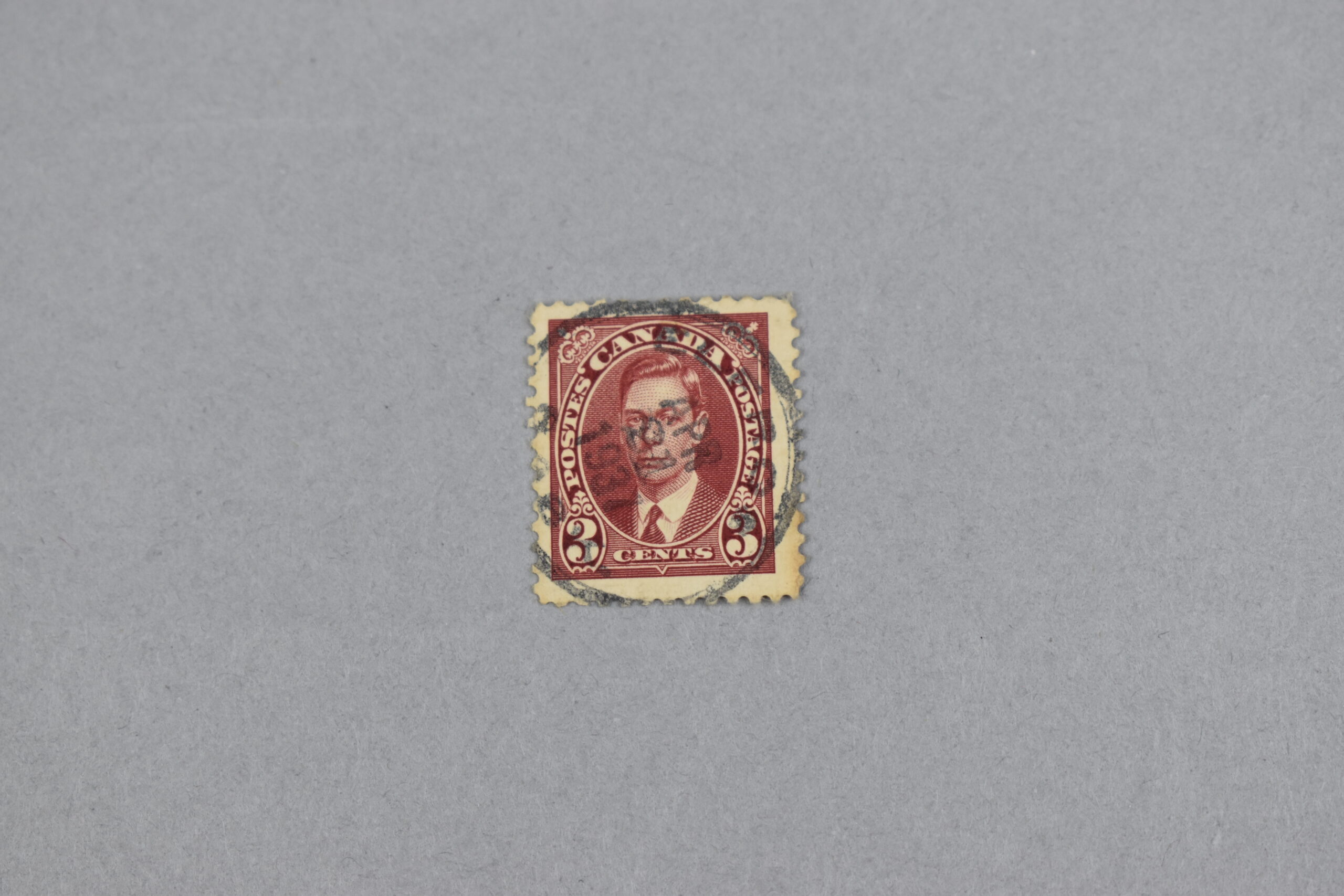 Estampilla que presenta un cuadrado de color rojo en cuya parte central se encuentra un retrato del Rey de Gran Bretaña y Emperador de la India: «Jorge VI» (1895-1952). Está emarcado en un círculo con motivos botánicos y dos coronas en miniatura, en este se puede leer la palabra correo en dos idiomas: POSTAGE (inglés) y Postes (francés). En ambos lados se encuentran en dos recuadros dos números que reflejan el valor facial y en la parte superior del círculo, cerca de la cabeza del monarca, se encuentra el nombre del país: «CANADA».