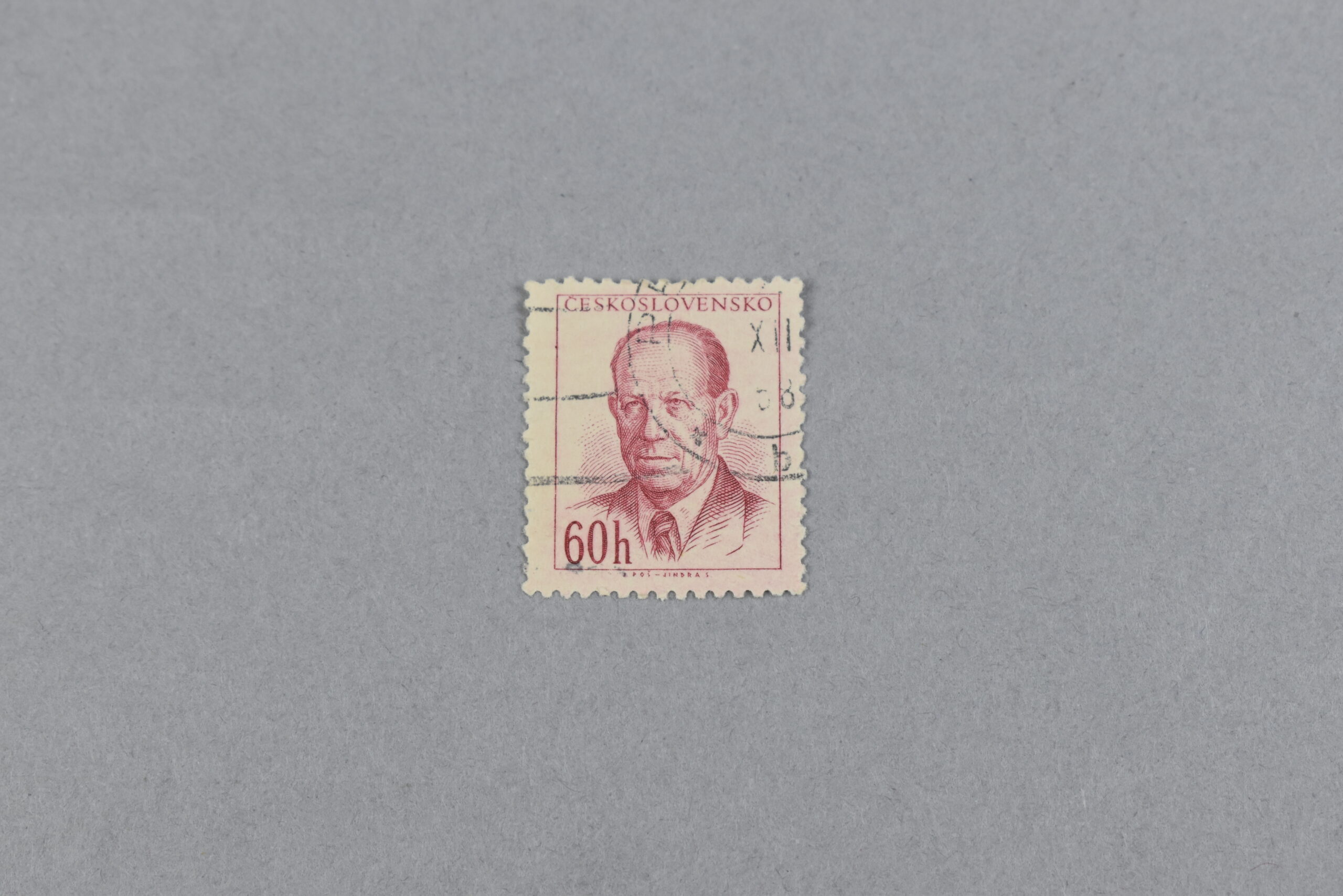 Estampilla que presenta un retrato de color rojo del primer ministro y presidente checoslovaco: «Antonín Zápotocký» (1884-1957). En la esquina inferior izquierda se puede apreciar el valor facial del ejemplar y en la parte superior se encuentra el nombre del país.