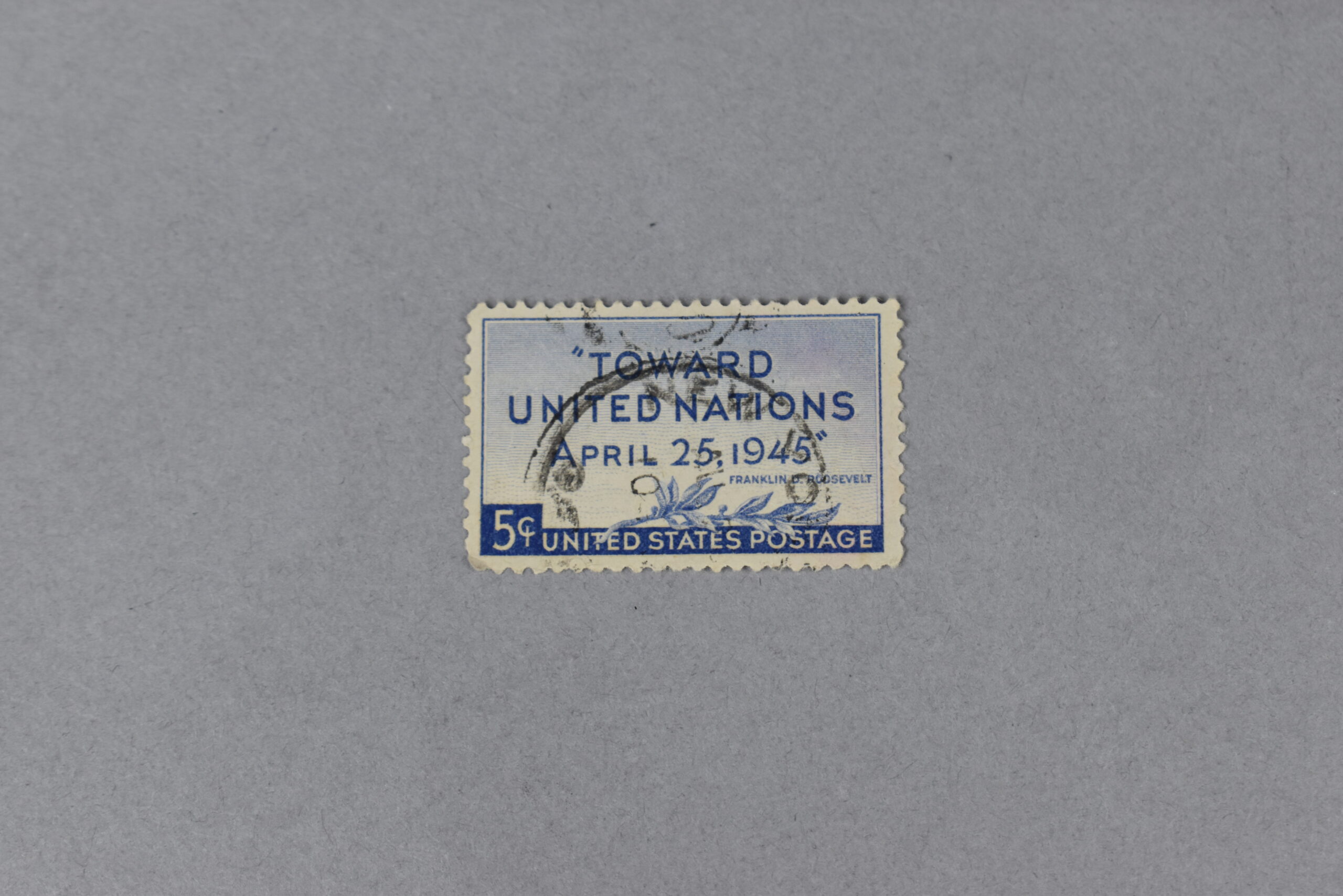 Estampilla conmemorativa por la Conferencia de las Naciones Unidas que se celebró en San Francisco el 25 de abril de 1945.