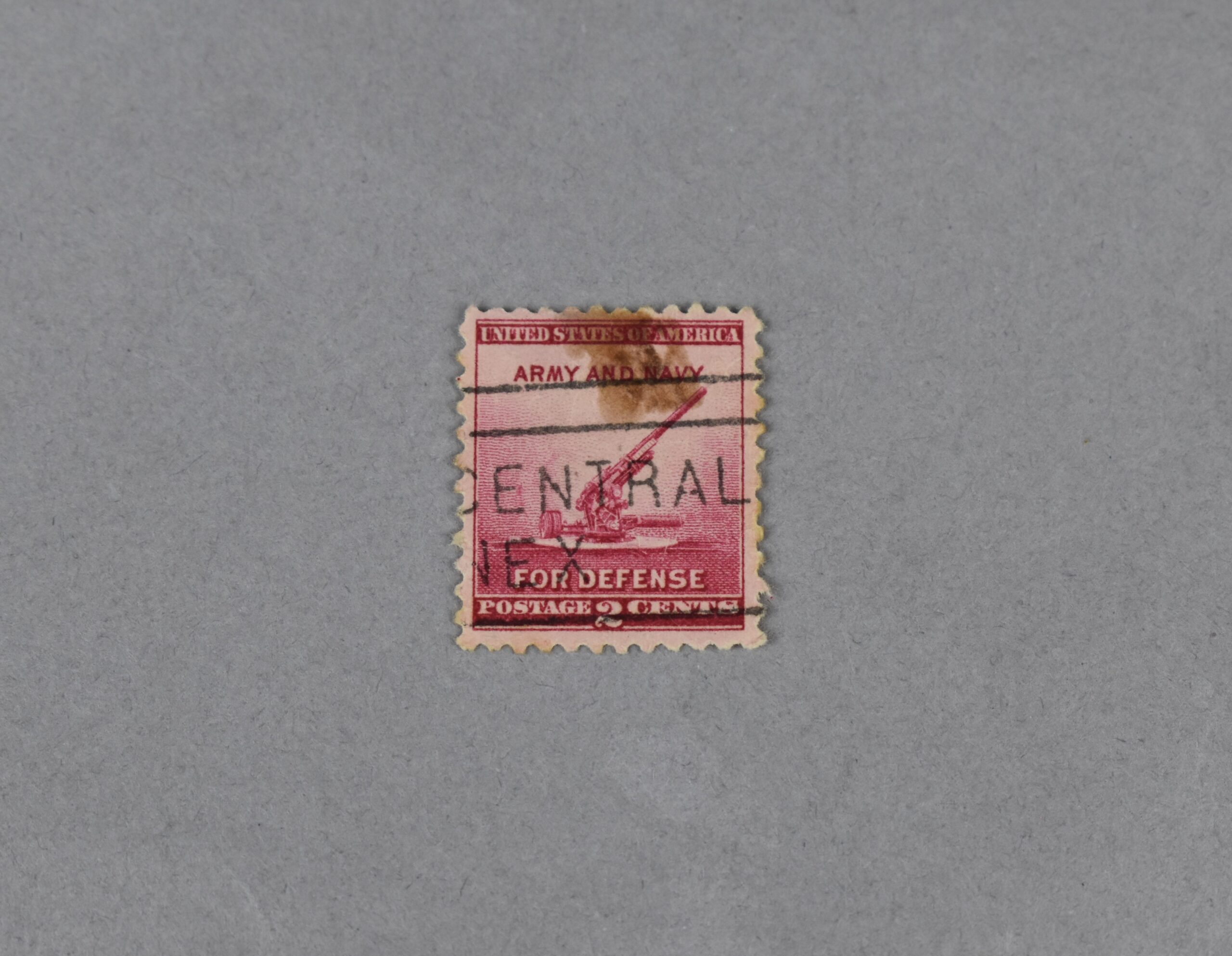 Estampilla presenta la imagen de un cañón antiaéreo.