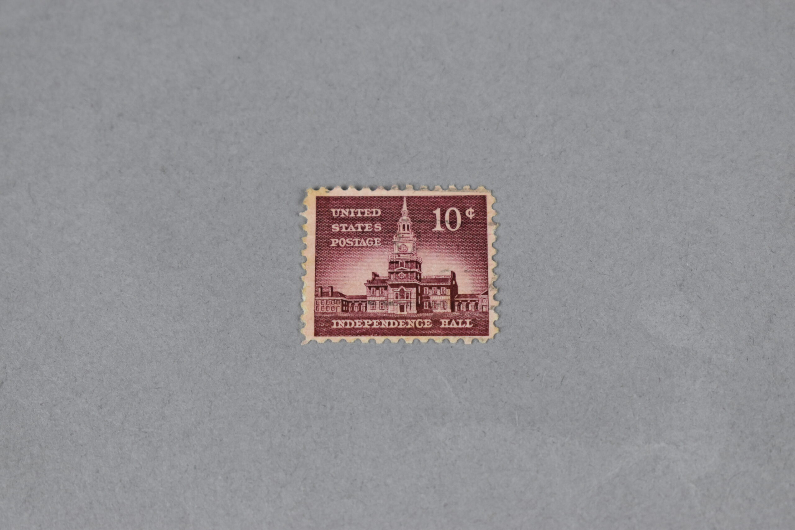 Estampilla con la bandera de Puerto Rico en el fondo, unido al busto del Jugador de béisbol puertorriqueño Roberto Clemente.