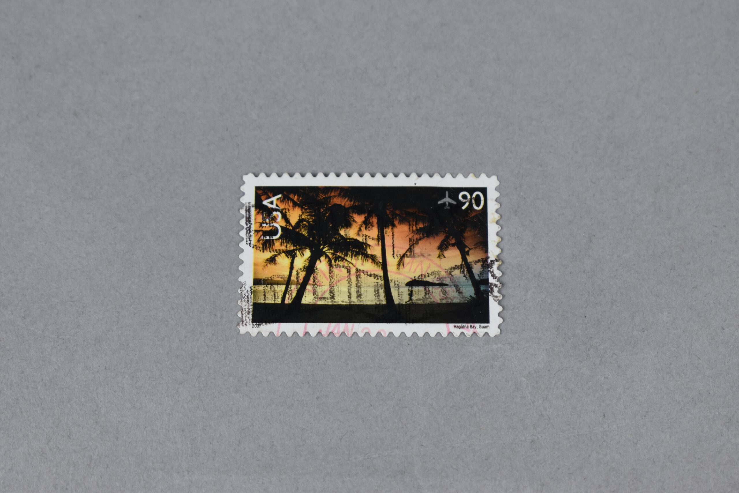 Estampilla que presenta como diseño la bahía de Hagatna, Guam.