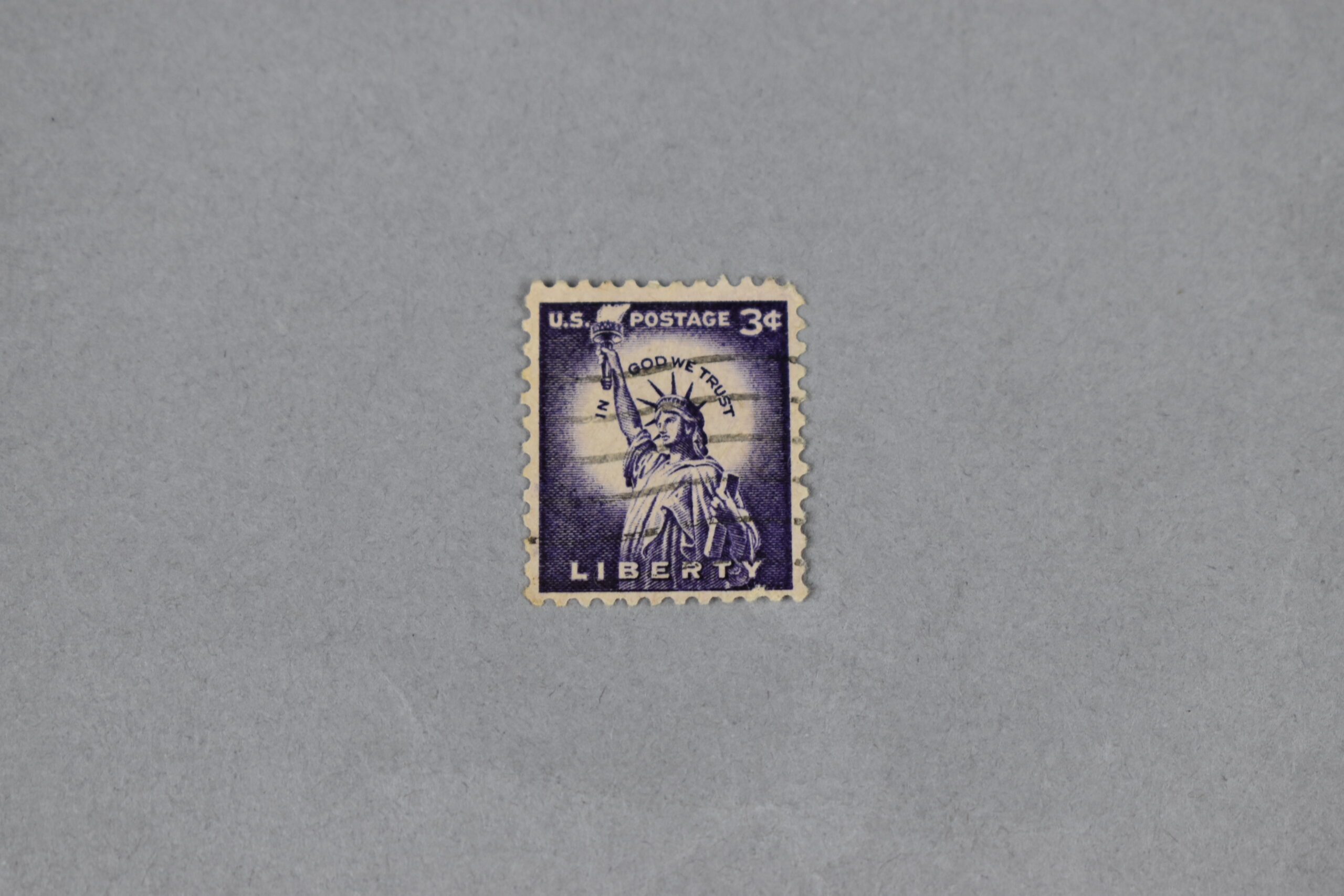 Estampilla que presenta la imagen de la Estatua de la Libertad.