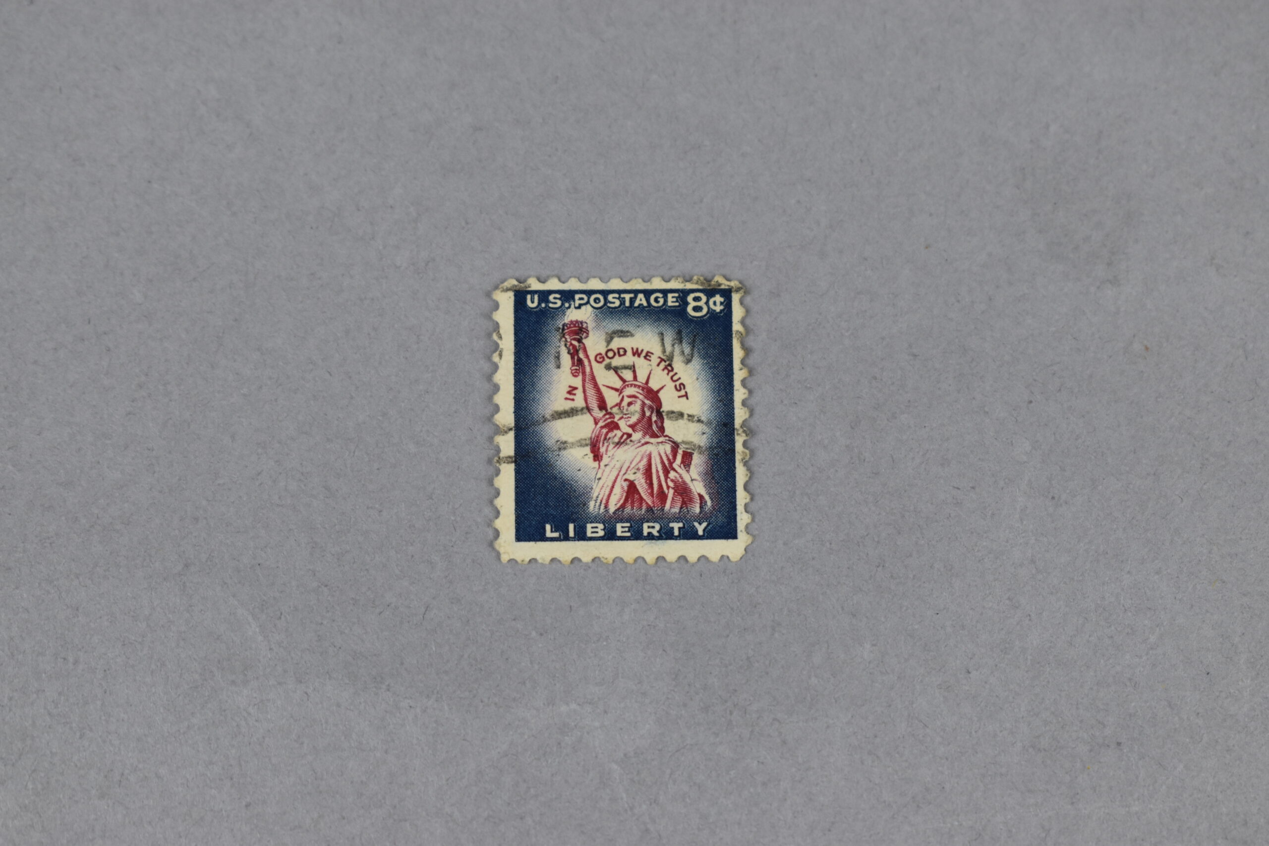 Estampilla que presenta la imagen de la Estatua de la Libertad.