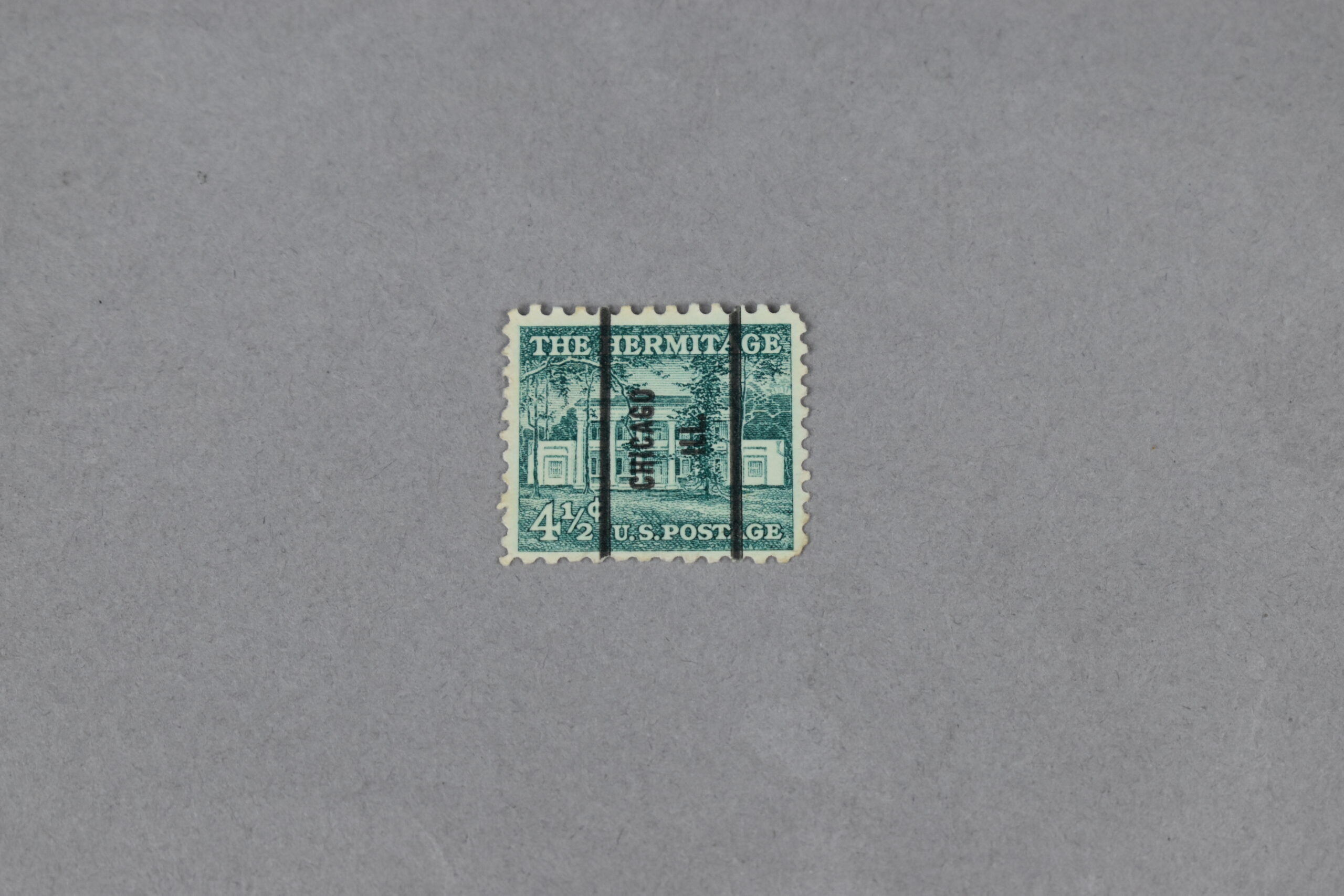 Estampilla que representación a “The Hermitage”, la histórica casa y plantación de Andrew Jackson, el séptimo presidente de los Estados Unidos, ubicada cerca de Nashville, Tennessee.