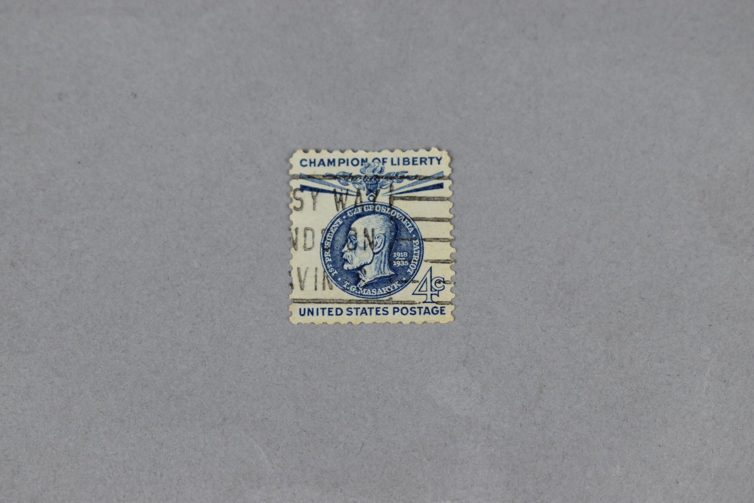 Estampilla con el retrato de perfil del primer presidente de Checoslovaquia: “Tomás Masaryk”.