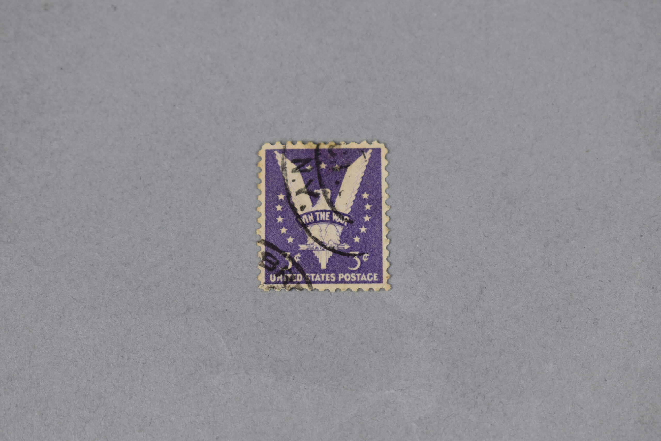 Estampilla presenta un águila estilizada en forma de “V”, que simboliza la victoria durante la Segunda Guerra Mundial, rodeada de 13 estrellas