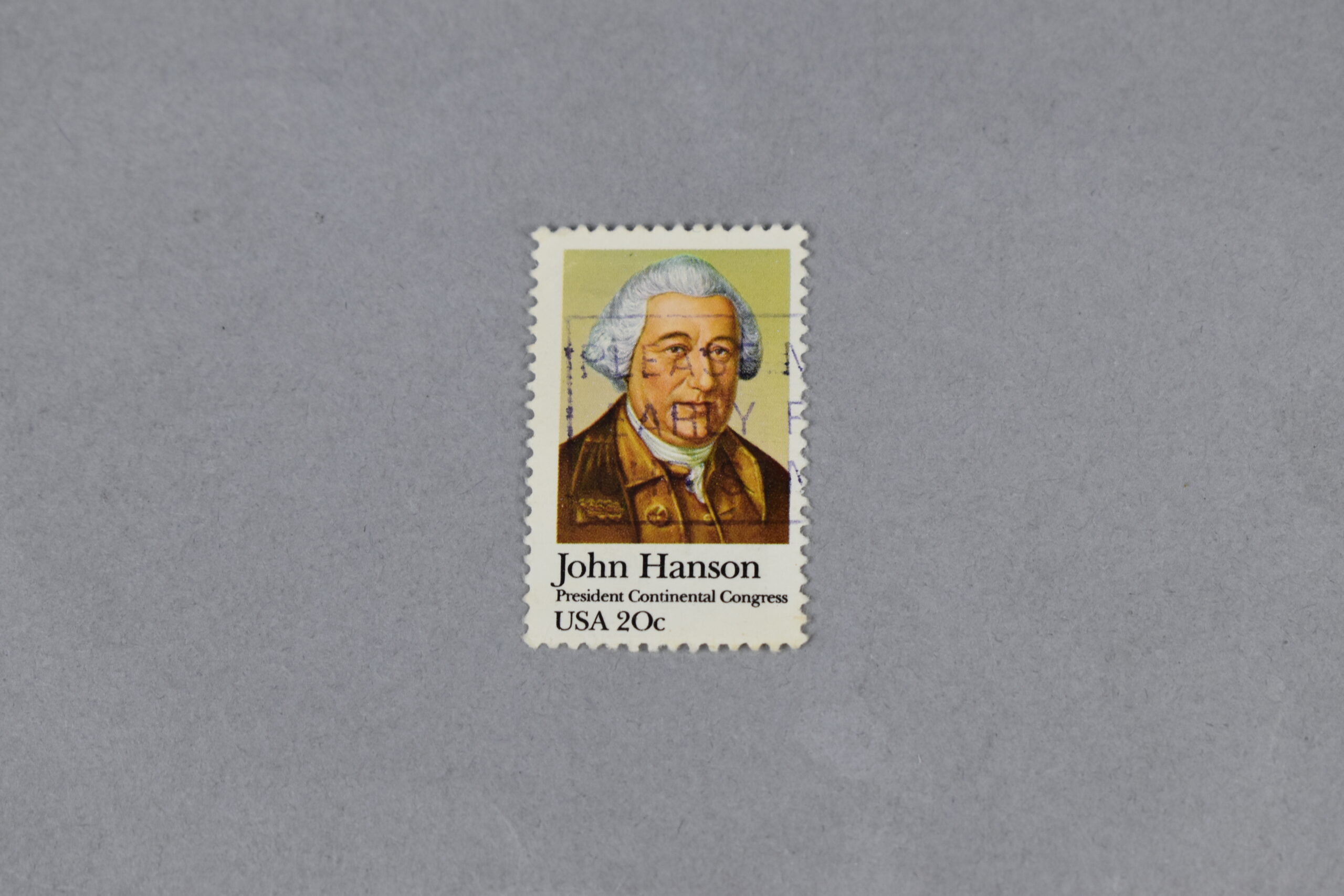 Estampilla que presenta el retrato de perfil del comerciante: “John Hanson”