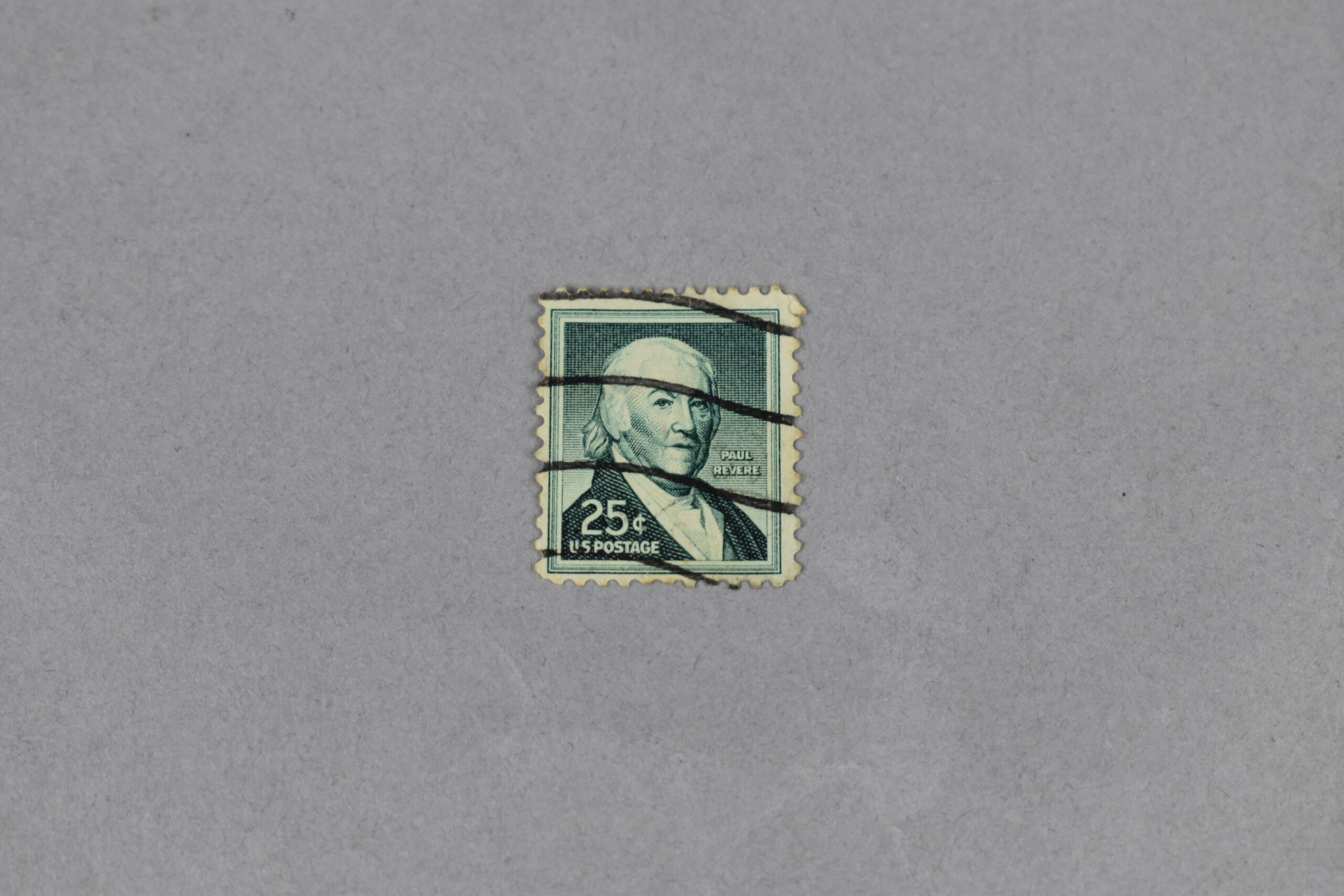 Estampilla con el retrato de perfil del orfebre estadounidense: “Paul Revere”.