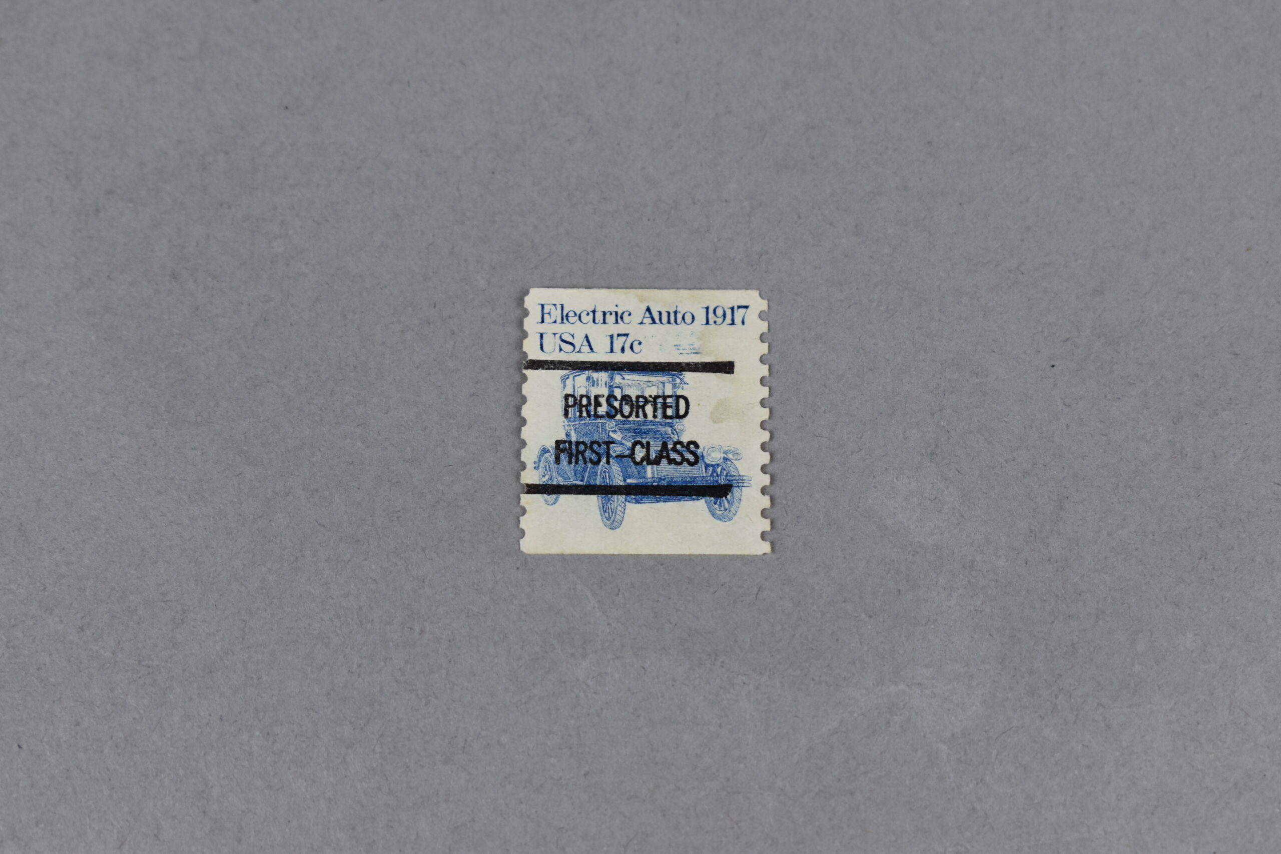 Estampilla que presenta la imagen de un automóvil eléctrico de 1917.