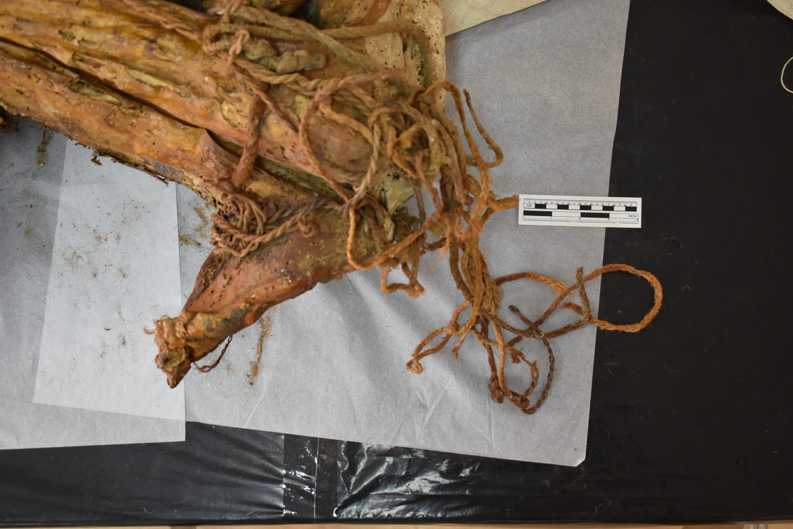 Momia con espalda encorvada y soguilla en los pies (MLS-OH-0004)