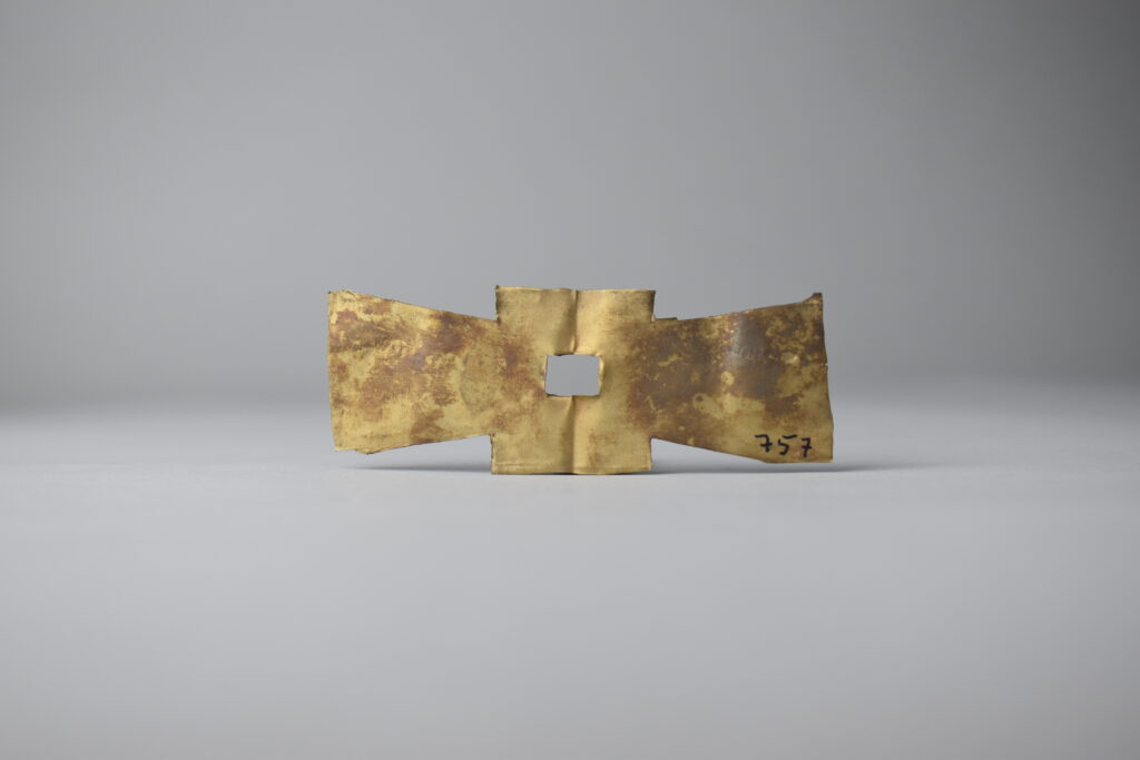 Tiene un cuerpo esférico, con decoración de filigrana en la parte superior. Ésta representa una posible serpiente. Al interior, presenta una pequeña esfera que emite sonido al agitar el artefacto.